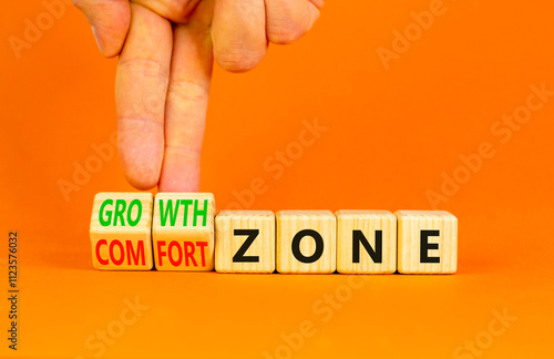Comfort or growth zone symbol. Concept words Comfort zone Growth zone on wooden cubes. Beautiful orange table orange background. Psychologist hand. Business comfort or growth zone concept. Copy space.