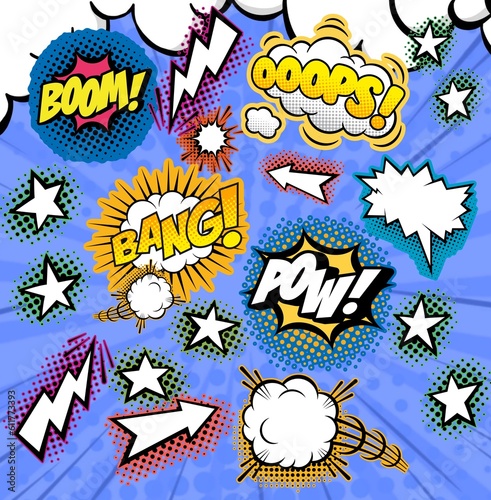 comic book explosion, Vintage, retro style pattern. Wallpaper, banner with comics, anime, manga elements.