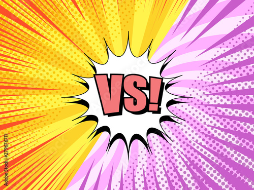 speech, humor, choice, halftone, sport, background, versus, challenge, against, wording, funny, cloud, battle, yellow, super, dynamic, element, light, page, duel, rivalry, effect, dotted, retro, fight, illustration, design, artwork, bubble, colourful, explosive, pink, ray, divided, horizontal, comic, pop, opposite, white, art, radial, bright, burst, superhero, competition, book, banner, vector, beam