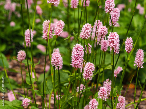 Common bistort (Bistorta officinalis) flowering in a garden