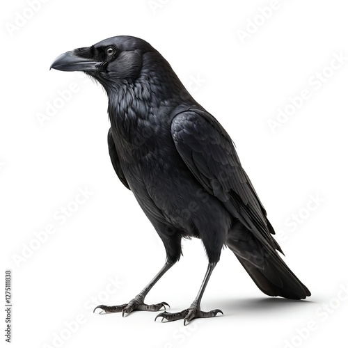 raven, bird, crow, large bird, wildlife, nature, animal, avian, feathered, wing, beak, claw, talon, isolated, white background, half face, portrait, detailed, sharp, wild, predator, intelligent, mystical, symbol, gothic, dark, mystery