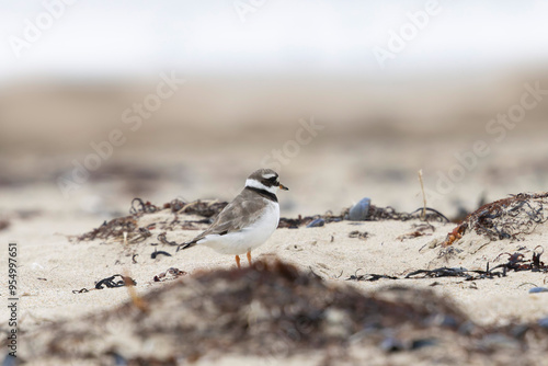 Common ringed Plover Charadrius hiaticula on a sandy beach in Normandy