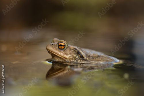 Common toad in the pool, spring mating, wildlife, isolated, Bufo bufoBufo bufofrog,