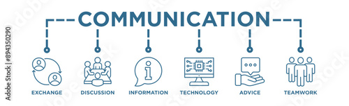 Communication banner web icon vector illustration concept with icon of exchange, discussion, information, technology, advice, and teamwork