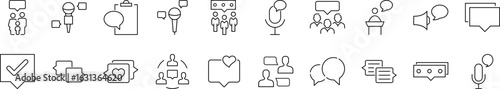 Communication Line Icon Set. Speech Bubble with People and Microphone Minimalistic Linear Pictogram for Web and Graphic Design, Apps, Banners, Social Network and Cards