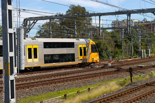 Commuter train approaching Homebush train station Sydney NSW Australia