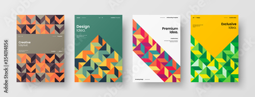 Company identity brochure template collection. Business presentation vector A4 vertical orientation front page mock up set. Corporate report cover abstract geometric illustration design layout bundle.