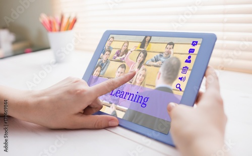 tablet, wireless, leisure, image, digital, person, information, distance, portable, course, online, part, way, cropped, against, using, composite, communication, hard-working, touch screen, technology, eyeglass, connection, e-learning, lifestyle, ethnicity, gesticulate, classroom, closeup, beverage, document, pointing, computer, learning, activity, studying, student, holding, screen, device, hot drink, female, finger, indian, woman, study, table, woman, year