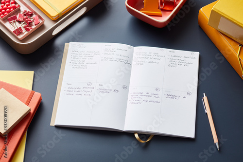 personal, calendar, diary, desk, design, date, composition, colours, arrangement, appointment, from above, blue background, writing, workplace, weekly, table, supply, style, stationery, set, schedule, reminder, planner, plan, pen, page, organised, office, notepad, note, modern, memo, layout