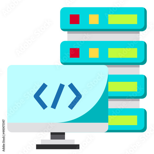 computer, server, hosting, monitor, icon, flat, graphic, symbol, illustration