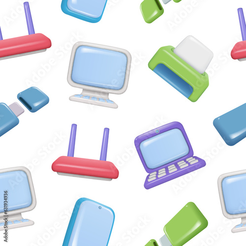 Computer gadgets pattern. Seamless background with laptop tablet pc printer decent vector smart devices