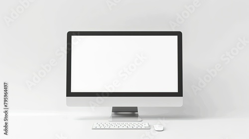 computer mock up with blank or white screen on clean and solid white isolated backgrounds
