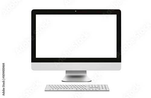 computer, screen, blank, monitor, keyboard, desktop, device, technology, digital, modern, graphic, image, illustration, white, black, grey, silver, light, dark, front, view, isolated, product, design, tech, contraption, display, input, output, electronic, hardware, software, interface, still, picture, rendering, photo, realistic