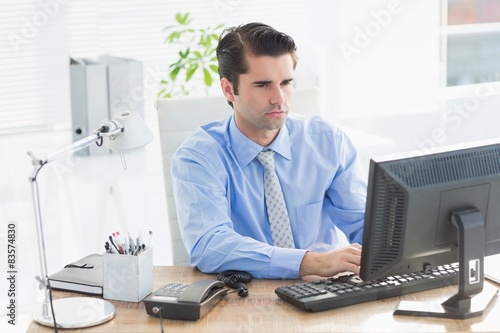 Concentrated businessman typing on the keyboard
