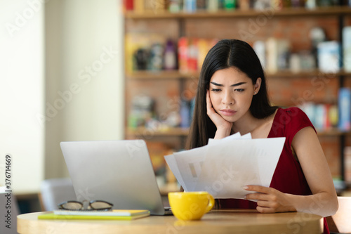 woman, working, business, cafes, paper, document, laptop, problem, sleepy, adult, copy space, asian, cyberspace, reading, men at work, report, pensive, young, indoor, thoughtful, bored, concentrated, statement, manager, motivation, project, employee, girl, career, success, korean, technology, lifestyle, startup, achievement, cafeteria, opportunity, businesswoman, checking, entrepreneur, free space, wireless, thinking, successful, professional, female, focused, empty space