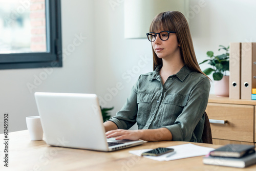 woman, concentrated, young, beautiful, businesswoman, working, laptop, office, productivity, efficiency, sharpened, determination, professionalism, success, career, multitask, technology, digital, workspace, entrepreneur, corporate, deadline, task, project, communication, collaboration, organisation, leadership, management, achievement, ambition, creativity, innovation, dedication, growth, development, inspiration, motivation, confidence, elegance, fashion, style, modern, photo, eyeglass