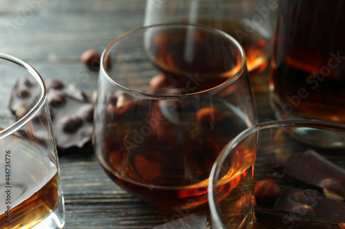 hard, glasses, chocolate, yellow, gold, liqueur, wooden, closeup, concept, nobody, beverage, brandy, bourbon, background, luxury, relaxation, epicure, cognac, drink, scotch, alcohol, pub, liquid, rum, nut, whiskey, snifter, transparent, wine, whiskey, old, bar