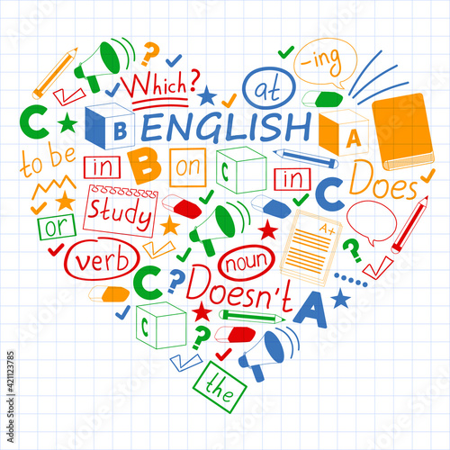 Concept of learning English. Flat design, vector pattern. English courses.