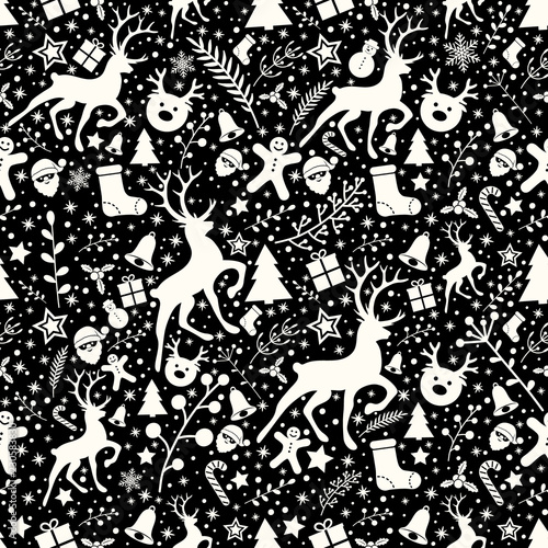 christmas, ornament, pattern, background, decoration, seamless, texture, vector, christmas, present, gift, holiday, wrapping, paper, wallpaper, celebration, vintage, retro, floral, tree branch, icon, illustration, concept, design, cartoon, card, colourful, tree, reindeer, cervid, santa, claus, cookie, gingerbread, star, snowflake, snow, flake, bauble, ball, symbol, season, seasonal, winter, mistletoe, cane, sweet, merry, happy, black