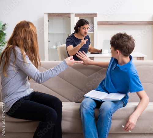 Concept of underage smoking with young boy and family