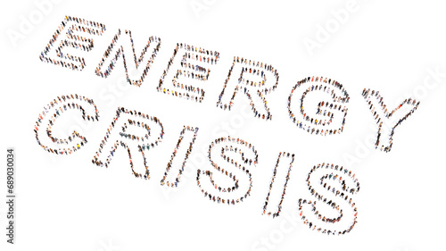 Concept or conceptual large community of people forming ENERGY CRISIS message. 3d illustration metaphor for energy shortages due to war, russian sanctions, coal dependency and drought