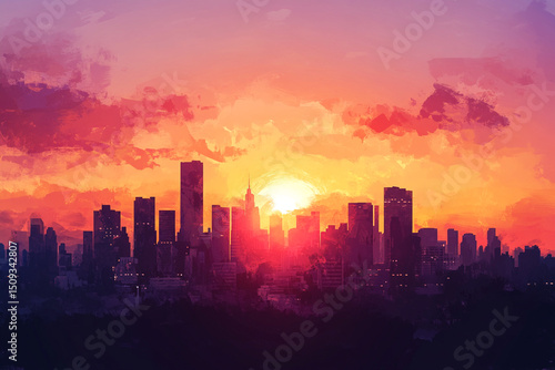 city, skyline, sunset, sky, silhouette, city landscape, building, urban, sun, architecture, dusk, cloud, night, sunrise, skyscraper, building, evening, landscape, panorama, downtown, town, cloud, red, tower, orange