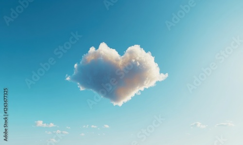 Conceptual floating cloud shaped like a heart against a clear blue sky, symbolizing love and freedom.