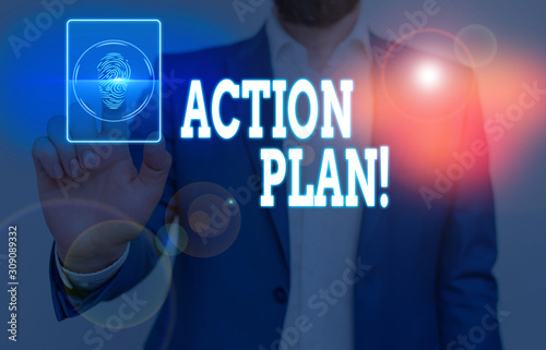 Conceptual hand writing showing Action Plan. Concept meaning proposed strategy or course of actions for certain time