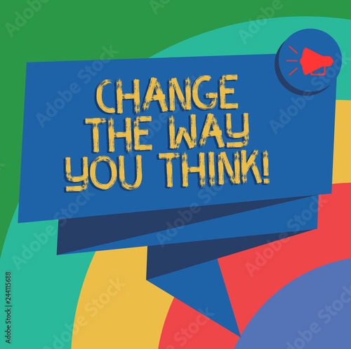 Conceptual hand writing showing Change The Way You Think. Business photo text Changing your ideas have imagination to improve Folded 3D Ribbon Sash Speech Bubble photo for Celebration