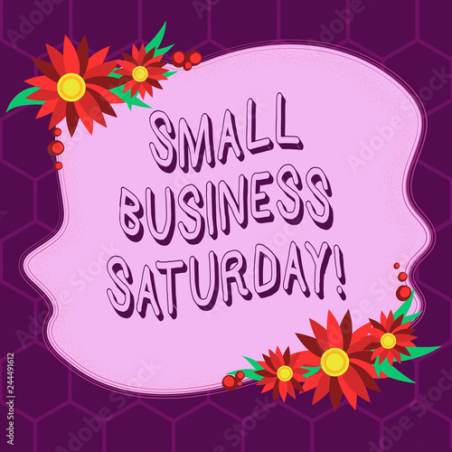 Conceptual hand writing showing Small Business Saturday. Business photo showcasing American shopping holiday after thanksgiving Blank Color Shape with Flowers Border for Cards Invitation