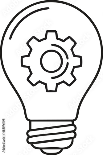 Conceptual illustration of a lightbulb with a gear inside. The design represents ideas, innovation, and the process of problem-solving. Suitable for business, technology, and creative projects