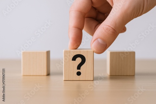 hand, block, question, idea, problem, solving, mark, wood, concept, solution, answer, doubt, uncertainty, choice, decision, thinking, creativity, brainstorming, strategy, planning, innovation, design, element, business, education, learning, teaching, quiz, exam, test, help, support, information, symbol, signs, human, person, finger, option, ask