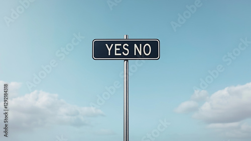 signpost, yes, no, decision, choice, direction, concept, guidance, outdoors, blue skies, clarity, symbol, abstract, roadsign, uncertainty, communication, information, motivation, optimism, pessimism, thoughtfulness, consultation, exploration, perspective, stark, minimalism, emotion, pathway, journey, freedom, decision-making, contrast, dilemma, calmness, peaceful, nature, sky, clear, symbolism, signage, opinion, expression, simplicity, open air, possibility, road