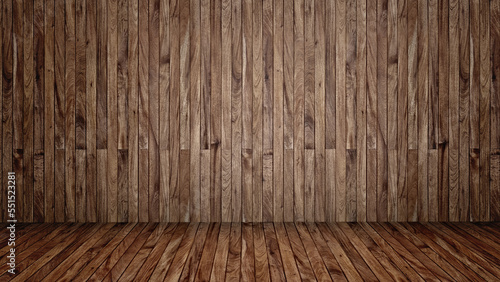 Conceptual vintage or grungy brown background of natural wood or wooden old texture floor and wall as a retro pattern layout. A 3d illustration metaphor to time, material, emptiness, age or rust
