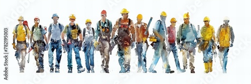 conceptual, watercolor, labour day, artwork, industrial, teamwork, illustration, construction, labor, oneness, working together, industry, build, engineering, team, collaboration, construction site, labourer, project, manpower