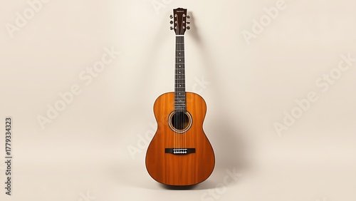 concerto. Classical guitar showcased with detailed wood grain under studio lighting, embodying musical elegance. event programs.