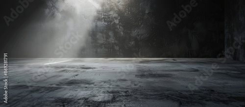 Concrete floor illuminated by a white spotlight for backdrop