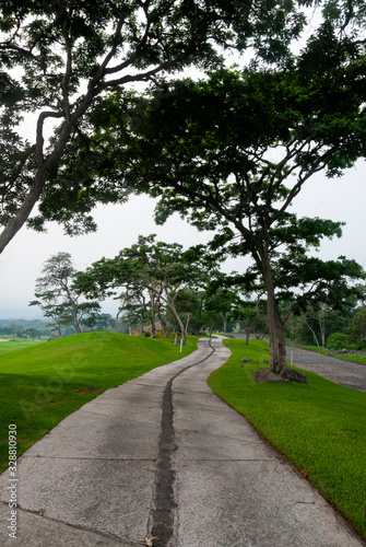Concrete road on a golf course called La Reunion in Guatemala, destroyed by volcano eruption called de Fuego, was an important tourist destination of great foreign investment.