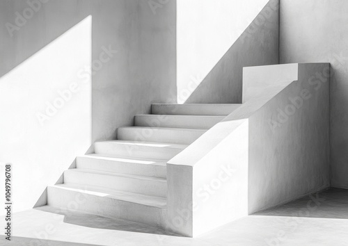 concrete, step, stair, staircase, white, minimalist, modern, architecture, design, building, interior, exterior, shadow, light, sun, wall, geometric, abstract, pattern, texture, simple, clean, bright, sunlight, contrast, monochrome, black-and-white, minimal, contemporary, stylish, elegant, structure, urban, line, angle