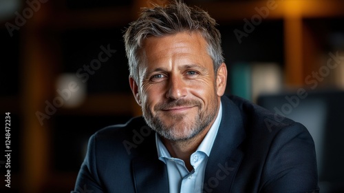 Confident and Driven Business Executive in Sharp Attire Smiling Optimistically Towards Future Success and Growth Opportunities