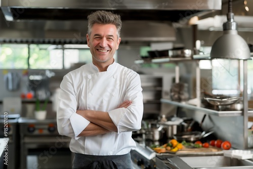 confident, professional, happy, smiling, chef, kitchen, modern, culinary, cooking, eatery, cook, food, cookery, workspace, apron, expertise, epicure, hospitality, service, preparing, skill, gastronomy, experienced, male, occupation, indoor, bright, healthy, ingredient, vegetable, fresh, career, cheerful