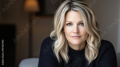 portrait, woman, blond, wavy, hair, casual attire, confident, adult, beauty, attractive, stylish, fashion, smile, feminine, natural, look, female, modern, elegance, mature, professional, relaxed, expressive, face, individual, trendy, person, soft, light, indoor, comfortable, warm, positive, cheerful, approachable, graceful, authentic, content, bright, casual clothes, elegant, gentle, serene, aglow