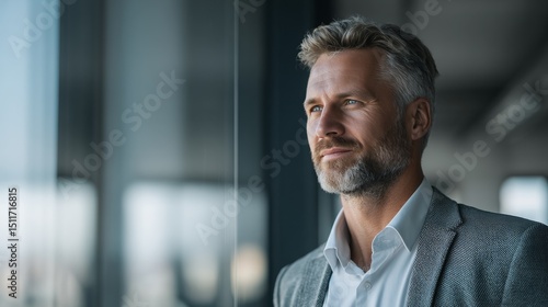 Confident business professional in formal attire, embodying leadership and professionalism in a corporate environment