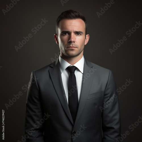 Confident Businessman in Classic Black Suit with Tie. Corporate Leadership and Success Concept