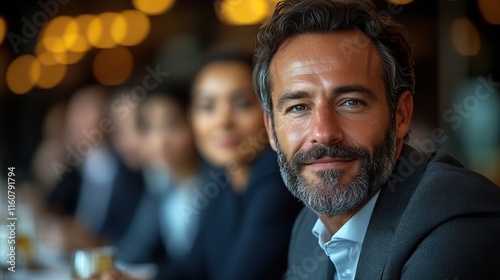 Confident businessman sitting in a group at a business seminar or workshop