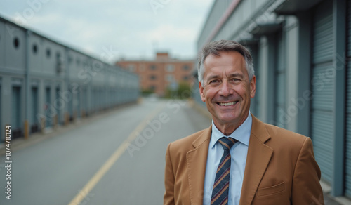 executive, professional, leadership, success, optimism, achievement, corporate, warehouse, industry, storage, facility, commercial, entrepreneur, manager, senior, experienced, mature, charisma, confidence, friendly, approachable, trustworthy, expertise, mentor, career, business district, urban, city, outdoors, daylight, portrait, head shot, suit, attaching, brown, blue, grey, happiness, positivity, satisfaction, accomplishment, retirement, ceo, director
