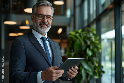 businessman, tablet, office, professional, suit, confident, portrait, smiling, corporate, work, technology, businessman, entrepreneur, success, modern, business, leader