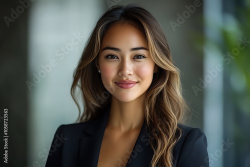 Confident Businesswoman with Long Hair Smiling in Natural Light1