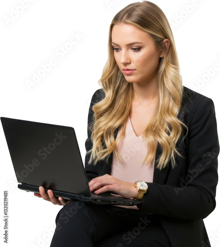 businesswoman, laptop, blond, woman, professional, working, computer, office, female, serious, concentrated, technology, digital, business, career, success, entrepreneur, workplace, elegant, stylish, corporate, executive, attire, modern, confident, portrait, studio, laptop
