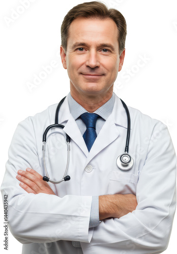 Confident Doctor with Stethoscope and Arms Crossed Smiling Gaze